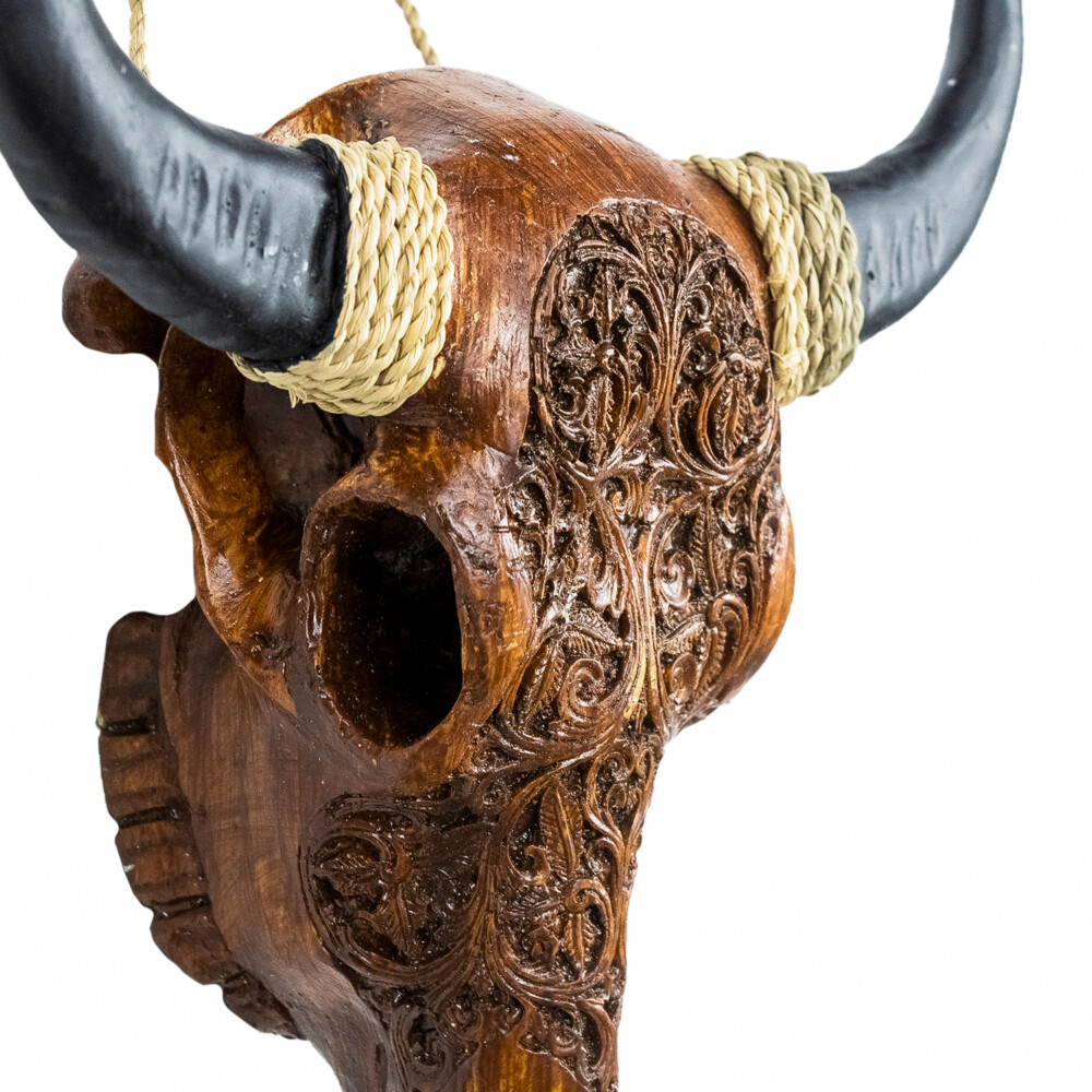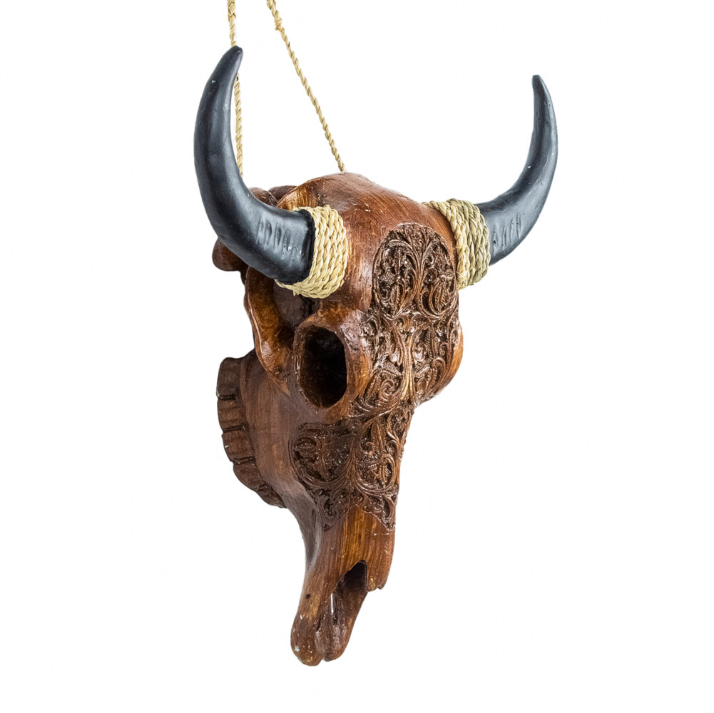 Brown Carved Resin Buffalo Skull
