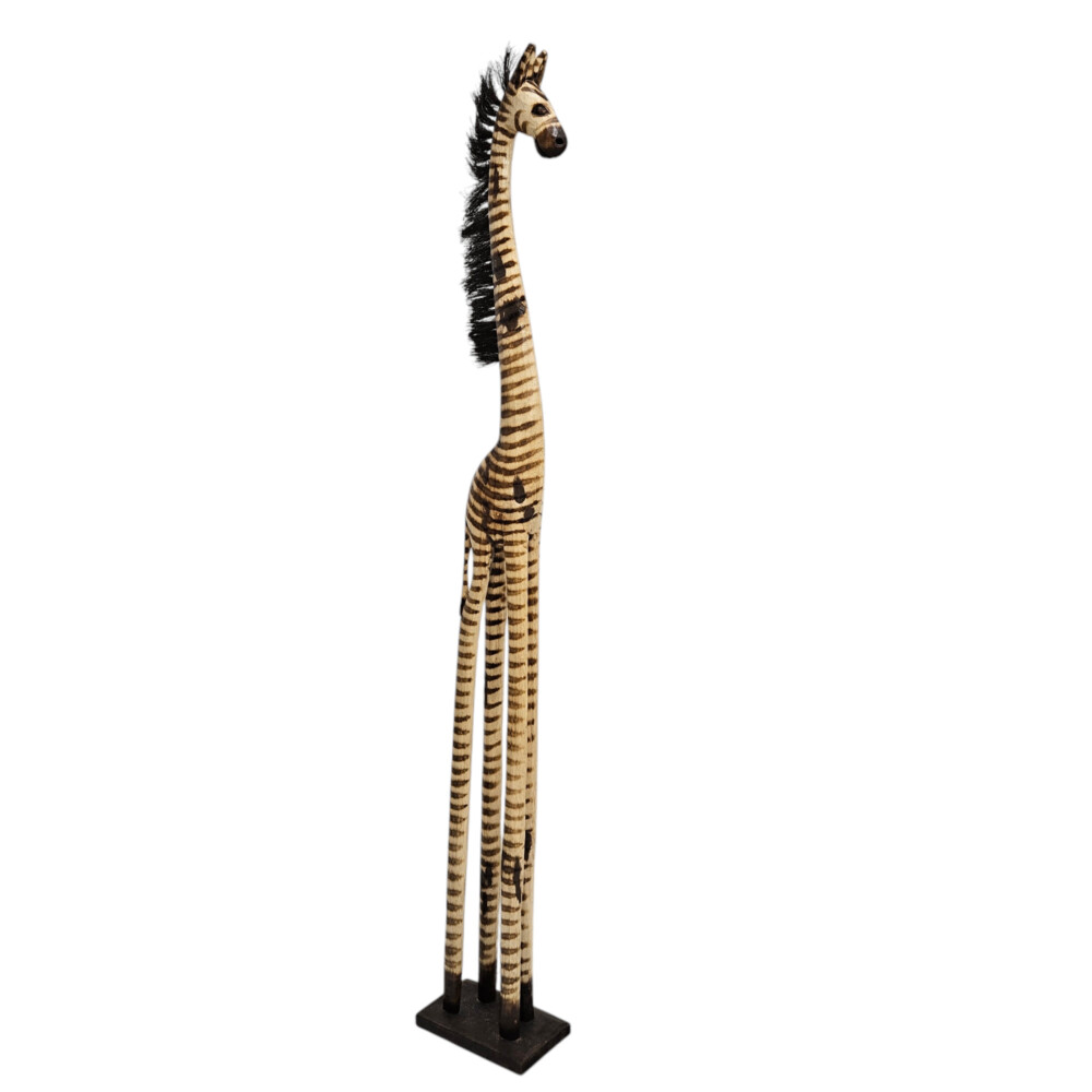 Adorned with hand-painted brown and beige stripes and featuring a textured mane, this zebra exudes personality and charm. Its intricate carving and fine detailing make it a true work of art, ideal for creating a focal point in any room